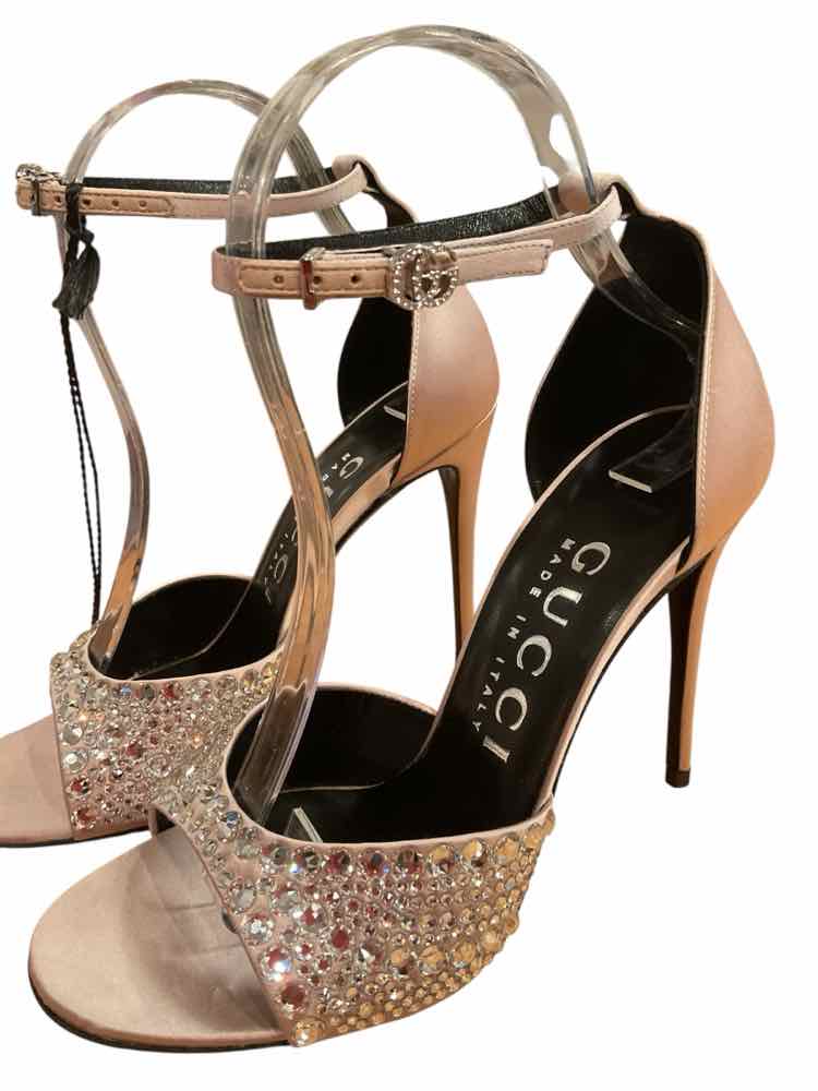 110 Satin Crystal Embellished Sandal, double G, NIB. Retail $1240