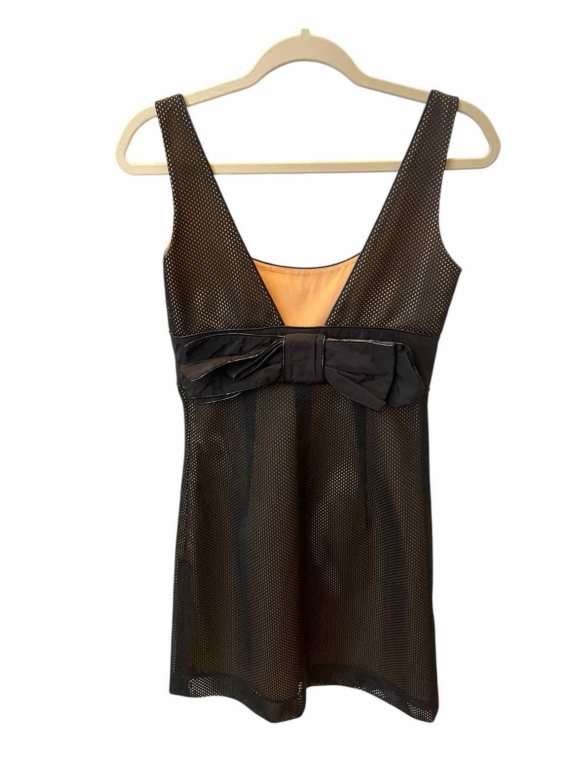 perforated sleeveless sheath with bow